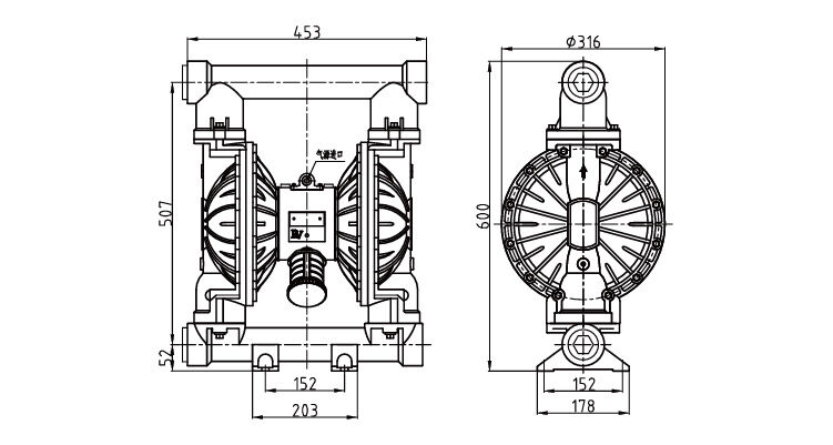 | Ağırlık: | Alüminyum pompa 29kg; Paslanmaz çelik 47kg; Sünek İton 66kg | ||